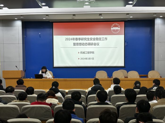 3月1日,机械工程学院在格物楼214报告厅召开2024年春季学期研究生工作会议,学院研究生辅导员及各班级学生骨干、研究生党支部支委、院研究生会全体成员参加会议。