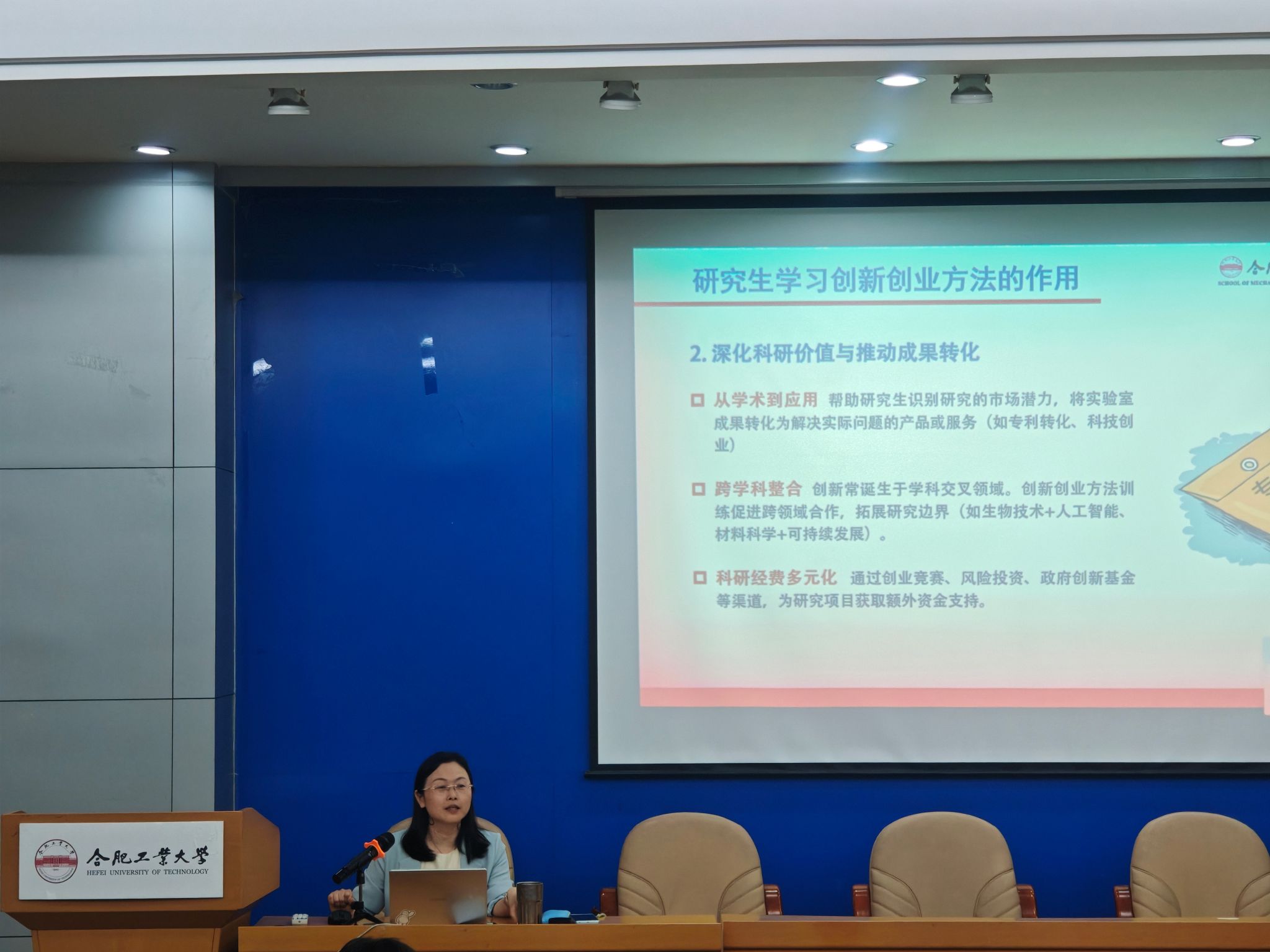6月27日下午,合肥工业大学第206期博睿沙龙在格物楼214报告厅顺利举行。此次活动以“研究生创新创业”为主题,特别邀请了机械工程学院朱立红副教授担任主讲嘉宾,吸引了学院150余名研究生踊跃参与。