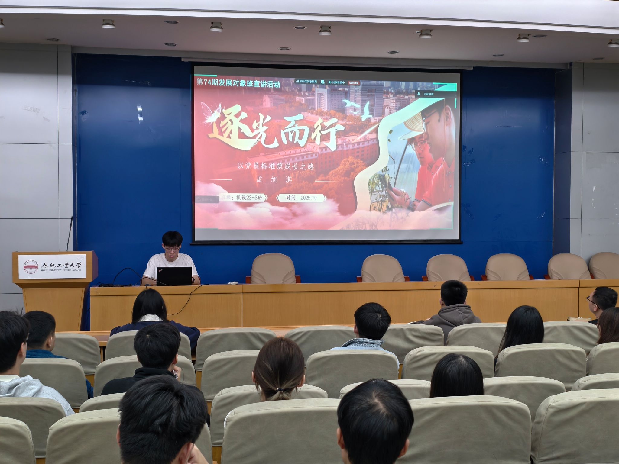10月15日,机械工程学院第74期发展对象班举办了以“榜样力量引前行,赤诚初心向党心”为主题的研讨交流会。活动邀请中共预备党员、校十佳社会公益标兵孟旭淇同学作专题分享,旨在通过榜样的引领作用,激励全体学员坚定理想信念、锤炼能力本领,以实际行动积极向党组织靠拢。