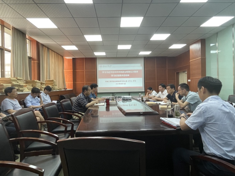 2023年6月12日上午,机械工程学院党委理论学习中心组在格物楼308会议室召开扩大会议进行集中学习。学院党委书记张显东主持会议,学院中心组成员和各系所主任参加学习。