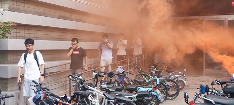 下午3:20,学院格物楼全体师生及管理人员,进入消防安全演习状态。各楼层参加演习的师生迅速做好准备,用湿毛巾捂住口鼻,以小跑形式开始疏散,听从楼层引导员或保卫部特勤队员的指挥,迅速有序的按照既定逃生路线撤离建筑物,并于空旷地带集合。演习期间,楼层引导员及特勤队员在各层安全出口处负责维持秩序并最后撤离。最后,各位师生在格物楼附楼消防通道处进行了现场模拟灭火体验。