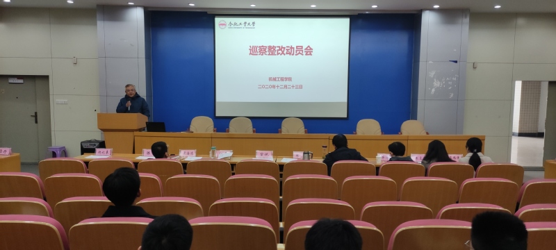 2020年12月23日,机械工程学院在屯溪路校区格物楼214报告厅召开巡察整改动员会议,学院党委委员和纪委委员、正处级组织员、全体教师党支部书记和学生党支部书记参加动员会议,会议由学院党委书记陈科主持。