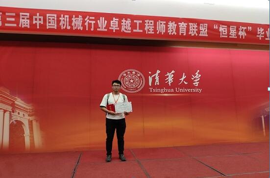 5月24~25日,第三届中国机械行业卓越工程师教育联盟“恒星杯”毕业设计大赛,在清华大学成功举行,我校机械工程学院机械设计制造及其自动化专业的四名学生,克服重重困难、奋发进取,成功晋级决赛。在清华大学李兆基科技大楼,张振亮同学在答辩过程中表现出色,获得优秀奖;吴弘毅、李成波、方韵三位同学获得佳作奖,展现了我校机械学子的风采。