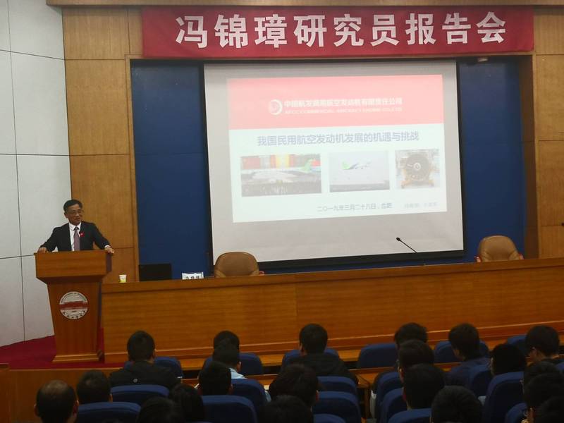 上午,冯锦璋与学院领导、相关教授、科研团队进行了座谈,听取了学院相关科研工作介绍,重点对我国航空发动机自主研发过程及其存在的若干“卡脖子”技术问题进行了介绍,与学院相关教授进行了互动交流,通过交流,学院将加强与中国商发的合作,进一步瞄准国产大飞机、航空发动机等国家重大需求,凝练科研方向,力争为国家的重大战略需求服务。下午,冯锦璋通过学院的学术交流活动品牌“机械大讲堂”,做了题为“我国商用航空发动机发展的机遇和挑战”的报告,学院相关科研团队师生200余人听取了报告会。学院党委书记韩江教授、院长訾斌教授、副院长黄海鸿教授参加了相关活动。来校期间,学校党委副书记陈刚会见并看望了冯锦璋总经理,校统战部部长姚跃传参加了会见。