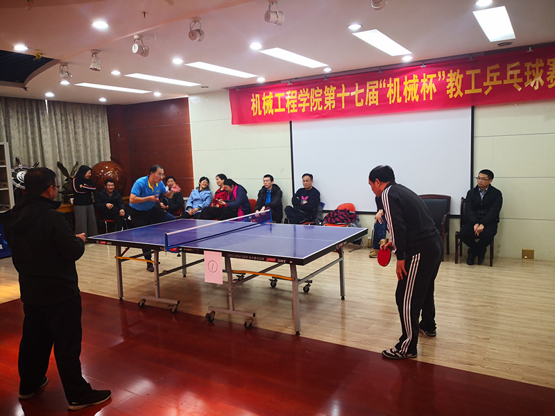 12月8日上午,机械工程学院第十七届“机械杯”教职工乒乓球赛在格物楼三楼热火朝天地拉开了序幕。8:30副院长、院工会主席左登发主持开幕式,院党委书记韩江致辞。