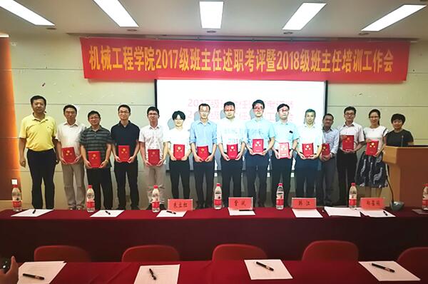 “这是我带领咱班学生开展的科技活动的照片以及获得的专利证书……” 7月11日下午的格物楼316报告厅不时传来阵阵掌声。机械工程学院2017级班主任工作述职考评暨2018级班主任选聘、岗前培训工作会在这里召开。学院相关负责人、教工支部书记及班主任、辅导员、学生代表参加活动。