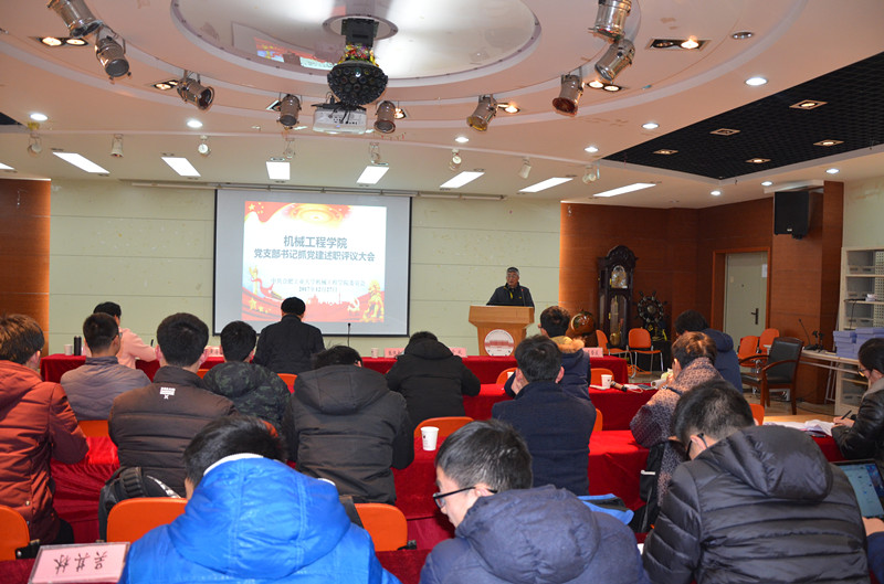 为全面学习宣传贯彻党的十九大精神,贯彻落实习近平新时代中国特色社会主义思想,按照新时代党的建设的总要求,根据学校党委的要求,机械工程学院于12月27日下午和晚上开展了基层党支部书记抓党建述职答辩会暨党建工作研讨会。出席本次述职大会的评委有合肥工业大学组织部党建组织员张怀良老师,机械工程学院全体院领导班子,全体党委委员及教师党支部书记代表。