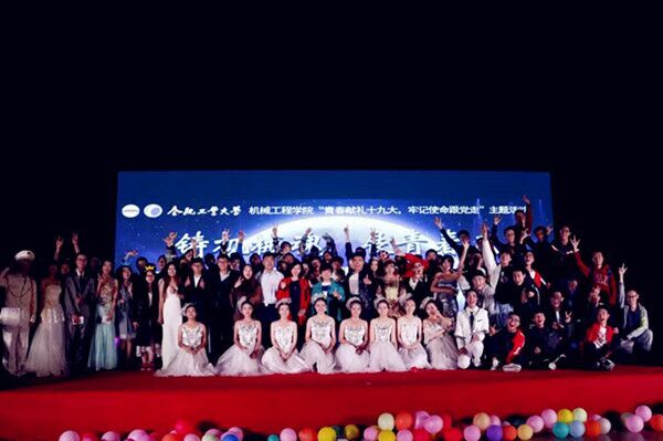 文艺汇演全方位展现大一新生入学两个月以来在学习、生活、思想、行为习惯等方面的适应性成果,突显了“牢记青春使命”的主题。晚会分为四大篇章:班级篇之执梦为笔、书青春无悔;学院篇鹏程万里、展机械风华;学校篇之携手你我、绘工大华章;四、国家篇之不负远志、共筑中国梦。