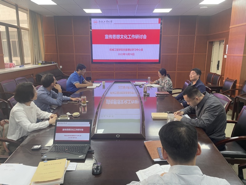 2023年10月16日上午,机械工程学院党委理论学习中心组在格物楼308会议室开展集中学习研讨,学习研讨主题是党的宣传思想文化工作。学院党委书记张显东主持会议,学院中心组其他成员参加学习。