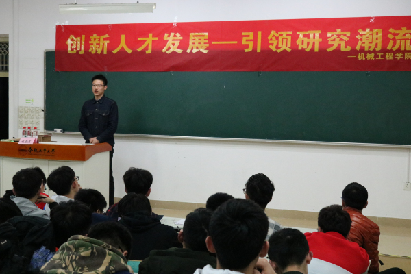 此次活动邀请到了侯言旭和赵浩然两位研究生学长为本科生同学讲解科研经历,如何确立研究方向。两位研究生学长都是在校研究生当中的佼佼者,都拥有专利3篇,而侯学长获院“十佳党员”称号和校级“优秀毕业生”称号等,赵学长为合肥工业大学研究生会主席并且多次获得校一等奖学金、SMC奖学金、合力奖学金、夏娜奖学金等荣誉。都是同学们的标杆、模范。