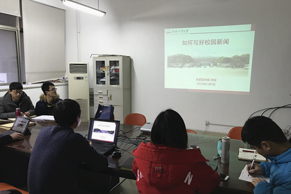 1月9日下午3点,机械工程学院各年级辅导员于格物楼302召开辅导员例会。此次例会邀请党委宣传部周慧老师为各年级辅导员做“如何写好校园新闻”专题培训,以进一步提高辅导员队伍的新闻采集、文字编辑、稿件撰写能力。