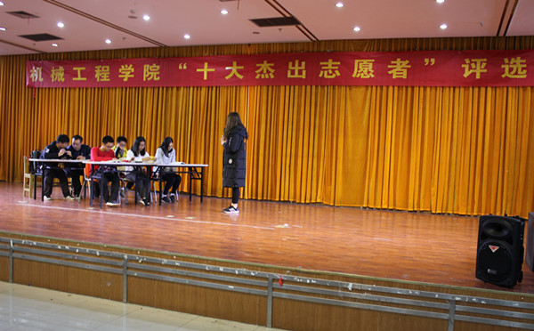 为进一步调动大学生志愿帮扶的积极性,提高大学生参与志愿服务热情,机械工程学院于12月1日晚在图书馆报告厅举办了志愿者即兴情景剧暨“多彩大学 青春飞扬”百里挑一评选表彰之十大杰出志愿者评选活动,表彰优秀志愿者,弘扬志愿服务精神。
